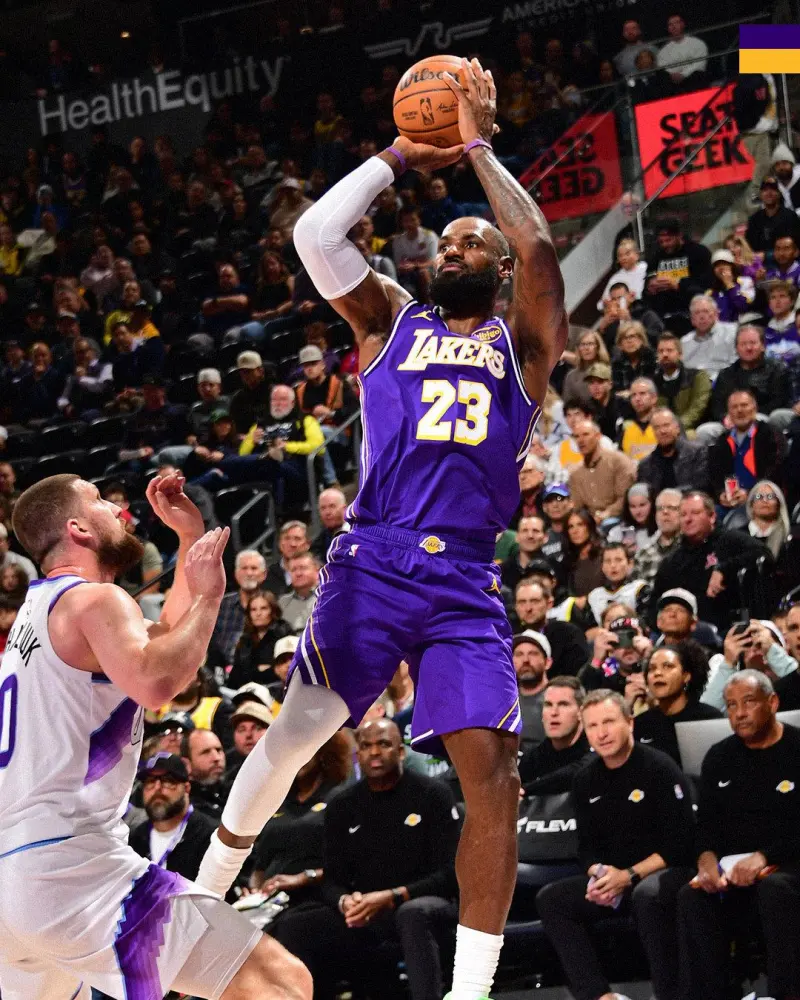 按理說,詹姆斯的比賽不再是簡單的勝負(fù),而成為一場關(guān)于人類運動員職業(yè)生涯極限的持續(xù)性奇觀。就跟當(dāng)年加內(nèi)特回歸森林狼被打上情懷標(biāo)簽,卡特因為一個扣籃被致青春,科比宣布收官戰(zhàn)一樣。然而,詹姆斯不是在養(yǎng)老,而是在爭冠,外界依舊清晰認(rèn)知他是即戰(zhàn)力,而不是吉祥物。他將退化的過程,演繹成了一場緩慢而堅定的、對歷史上限的系統(tǒng)性征服。詹姆斯的變老,不是斷崖式下滑,而是在穩(wěn)定中保持強(qiáng)勢。