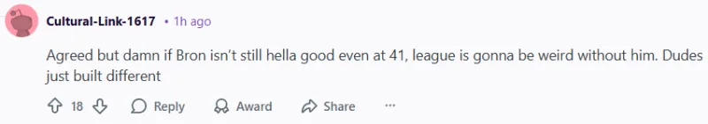 -(18贊)同意,但說實(shí)話,詹姆斯就算41歲了還是強(qiáng)得離譜。沒有他的聯(lián)盟肯定會(huì)很奇怪,這家伙就是不一樣。