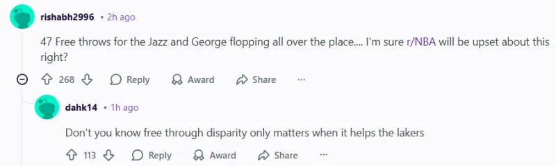 -(268贊)爵士拿到了47次罰球,喬治到處假摔……我敢肯定NBA一定會(huì)為此感到憤怒吧?