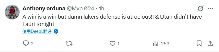 -贏就是贏,但湖人的防守也太糟糕了??!而且今晚猶他還沒有勞里。