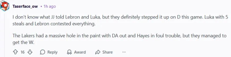 在艾頓缺陣、海斯陷入犯規(guī)麻煩的情況下,湖人在內(nèi)線出現(xiàn)了巨大漏洞,但他們還是設(shè)法拿下了勝利。