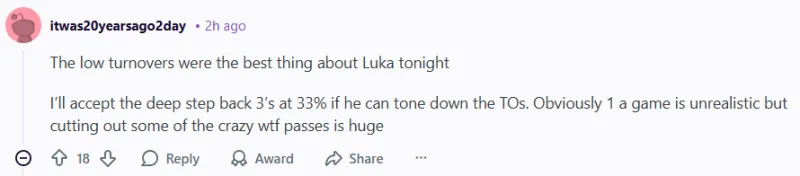 如果他能減少失誤率,我可以接受33%的后撤步三分球命中率。顯然,一場(chǎng)比賽1次失誤是不現(xiàn)實(shí)的,但減少一些瘋狂的傳球是非常重要的。
