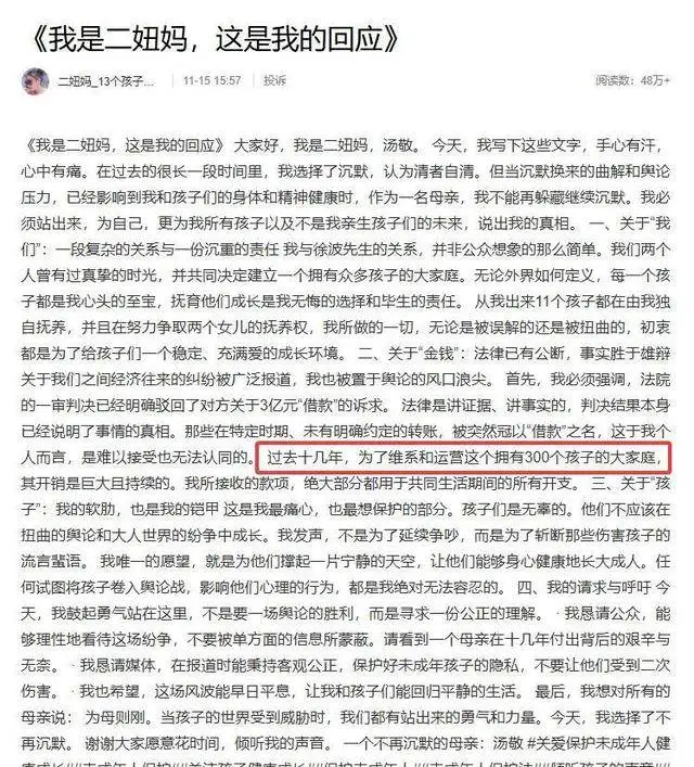 根據(jù)她的說法,她跟徐波不是普通的戀愛關(guān)系,早年還一起參與過“百子計劃”,這十幾年里,一直是她在打理這個由好多個孩子組成的“大家庭”。