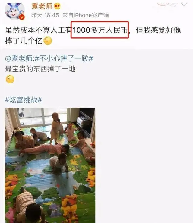 他還在社交平臺發(fā)過一張12個小孩趴在地上玩鬧的照片,配文“最寶貴的東西掉了一地”,仿佛這些孩子不是鮮活的生命,而是他的私有財產(chǎn)。