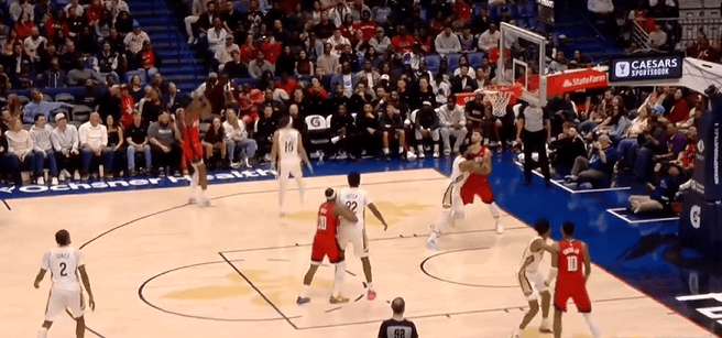 比賽第四節(jié),分球阿門空位三分不中,排名火箭暫時(shí)還領(lǐng)先鵜鶘6分。墊底
