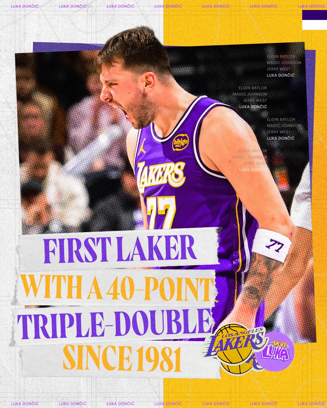 [流言板]東契奇是至1981年后湖人隊(duì)史首位砍下40分三雙的球員