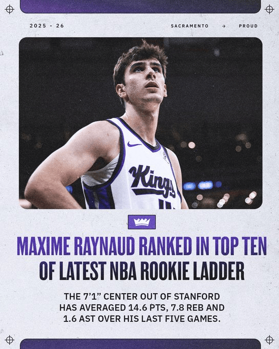 [流言板]國(guó)王官方:祝賀新秀雷諾首次排進(jìn)官方新秀榜前十!