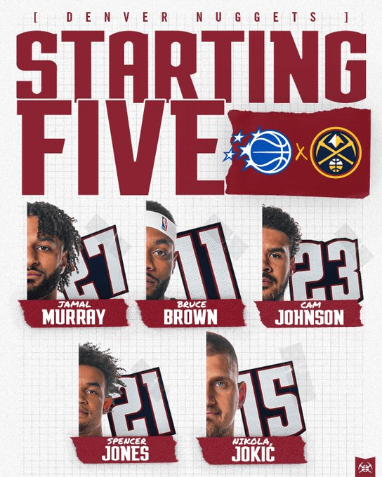 賽前,金首掘金官方曬出本場(chǎng)比賽的首發(fā)陣容: