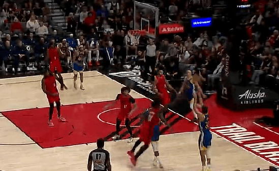 NBA常規(guī)賽,勇士對陣開拓者的賽季比賽正在進行中。
