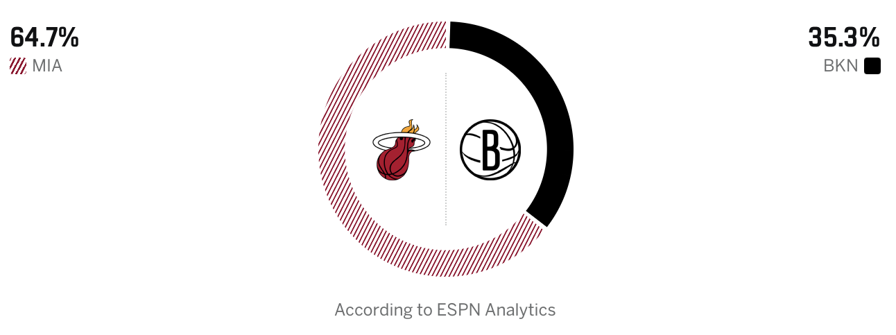 [流言板]ESPN預(yù)測(cè)熱火vs籃網(wǎng):熱火勝率64.7%,籃網(wǎng)勝率35.3%