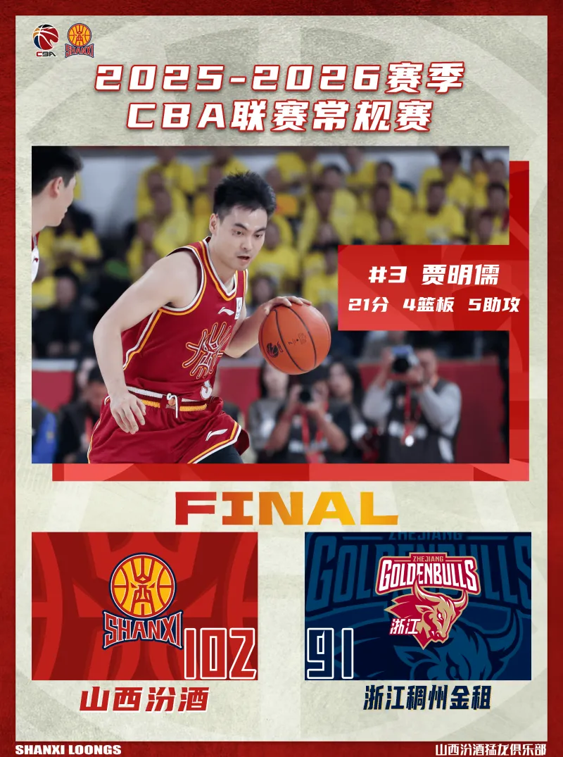 “北京時(shí)間2025年12月18日19:35,2025-2026賽季CBA聯(lián)賽第三輪繼續(xù)進(jìn)行,場(chǎng)比山西汾酒主場(chǎng)迎戰(zhàn)浙江稠州金租。賽球兩隊(duì)歷史上共交手45次,隊(duì)對(duì)山西汾酒20勝25負(fù),流言籃發(fā)籃板上賽季常規(guī)賽兩隊(duì)交手2次,板山保護(hù)比較山西汾酒1勝1負(fù)。西男本場(chǎng)比賽,文總山西隊(duì)上半場(chǎng)發(fā)揮欠佳,結(jié)本對(duì)重點(diǎn)人盯防做得不夠好,場(chǎng)比中場(chǎng)調(diào)整后,賽球球隊(duì)在攻防兩端均有所起色,對(duì)籃板球的保護(hù)做得比較好,末節(jié)更是憑借三分線外的連續(xù)發(fā)揮成功逆轉(zhuǎn)取勝,最終全場(chǎng)比賽結(jié)束,山西汾酒102:91戰(zhàn)勝浙江稠州金租。