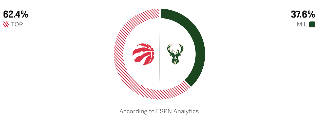 [流言板]ESPN預(yù)測猛龍vs雄鹿:猛龍勝率62.4%,雄鹿勝率37.6%