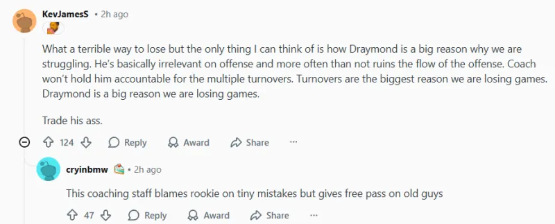 -(47贊)教練團(tuán)隊(duì)將微小的失誤歸咎于新秀,卻對老將網(wǎng)開一面