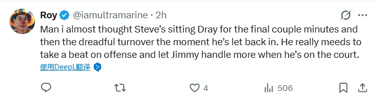 -天啊,我差點(diǎn)以為史蒂夫會讓追夢格林在最后幾分鐘坐冷板凳,結(jié)果剛讓他上場就搞出個致命失誤。他進(jìn)攻時真該放慢節(jié)奏,讓吉米在場上多掌控球權(quán)。