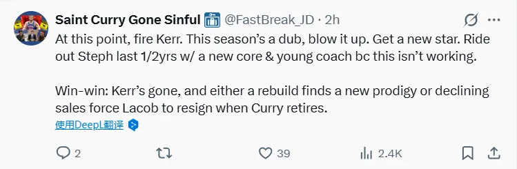 雙贏局面:科爾走了,要么重建找到新天才,要么隨著庫里退役,球隊(duì)收入下滑迫使拉科布辭職。