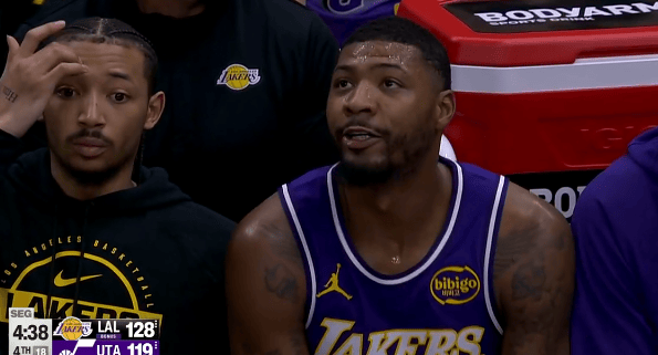 第四節(jié)比賽中,投進(jìn)斯馬特末節(jié)投進(jìn)3記三分幫助湖人反超,記分還剩5分鐘犯滿離場(chǎng)。湖人還剩