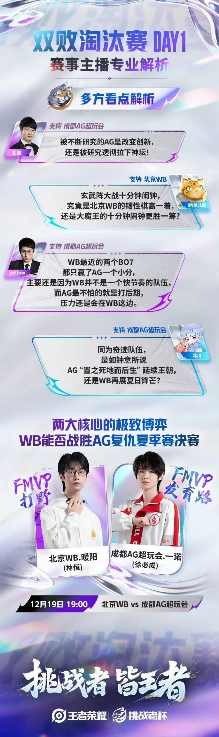 虎撲12月19日訊 [今日首發(fā)]AG、WB本年第四次BO7,板今B本誰(shuí)能晉級(jí)勝者組半決賽?