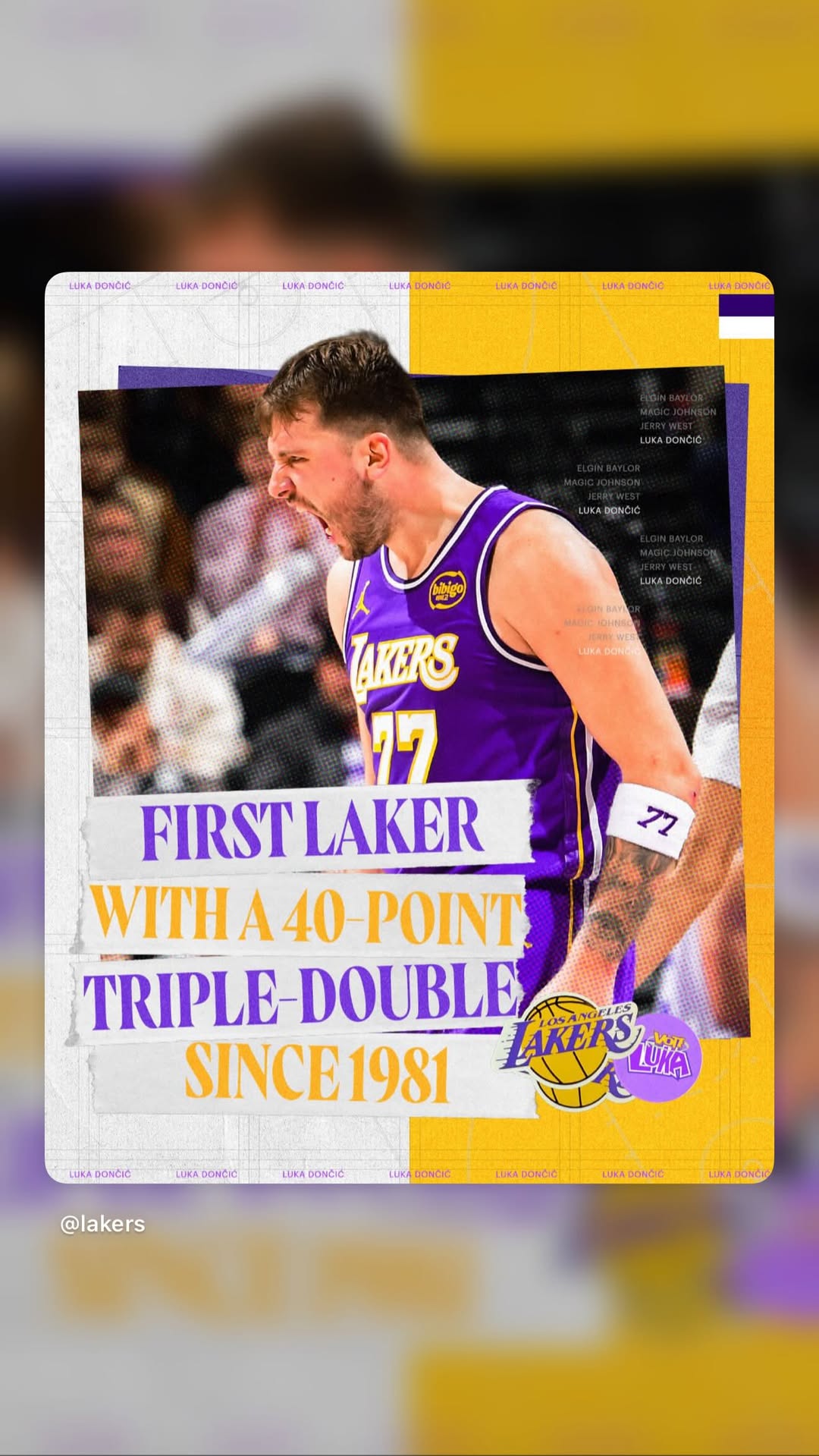 賽后,湖人球員拉拉維亞轉(zhuǎn)發(fā)了東契奇的海報: