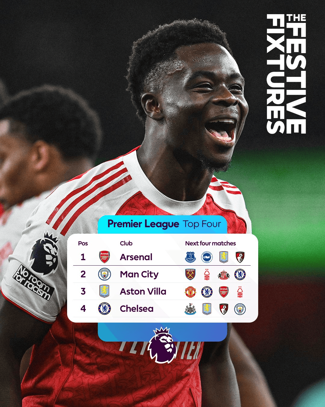 英超官方發(fā)布海報,盤點目前榜首四隊圣誕-新年賽程中的四個對手。