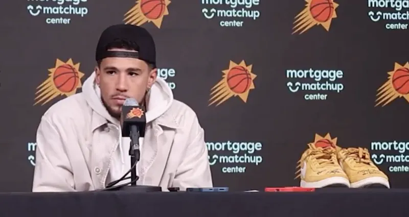 賽后太陽球員德文-布克接受了記者采訪,其實在談到給庫里郵寄自己的簽名鞋時,布克表示:“其實是他先聯(lián)系的我,我本來也打算主動找他的。”