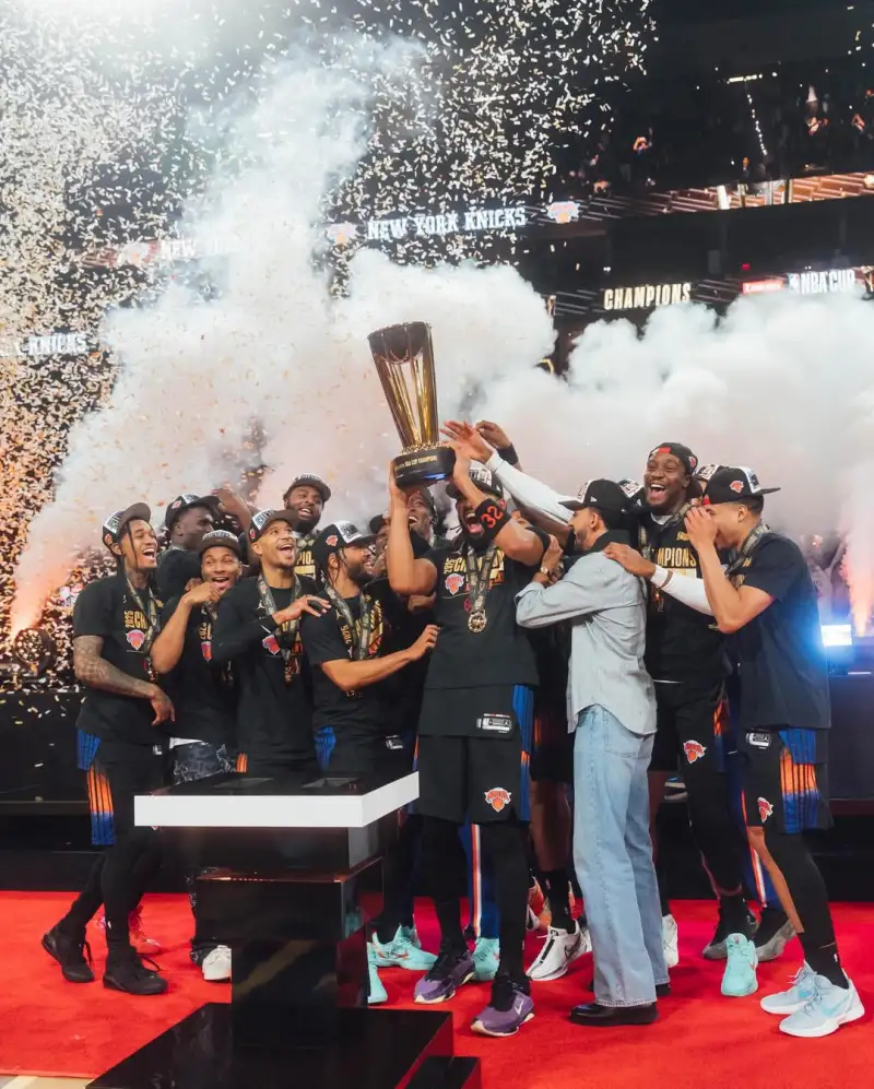 昨日尼克斯以124-113擊敗馬刺,照慶祝球奪得NBA杯冠軍。隊奪得