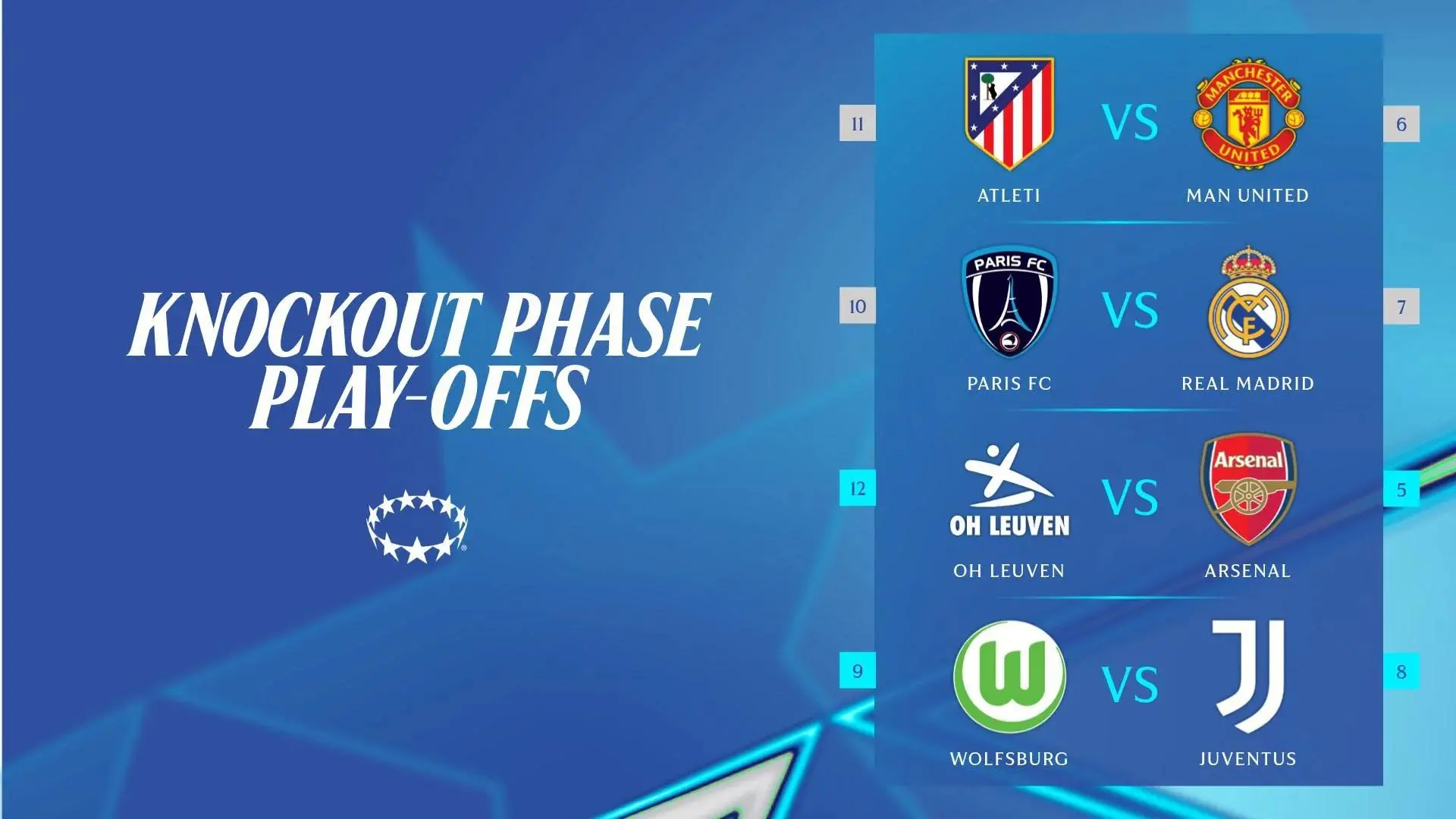 根據(jù)賽制,聯(lián)賽階段前四名的巴薩、里昂、切爾西和拜仁直接晉級八強,其余排名第5至第12的球隊需通過2月的淘汰賽附加賽爭奪剩余四個席位。