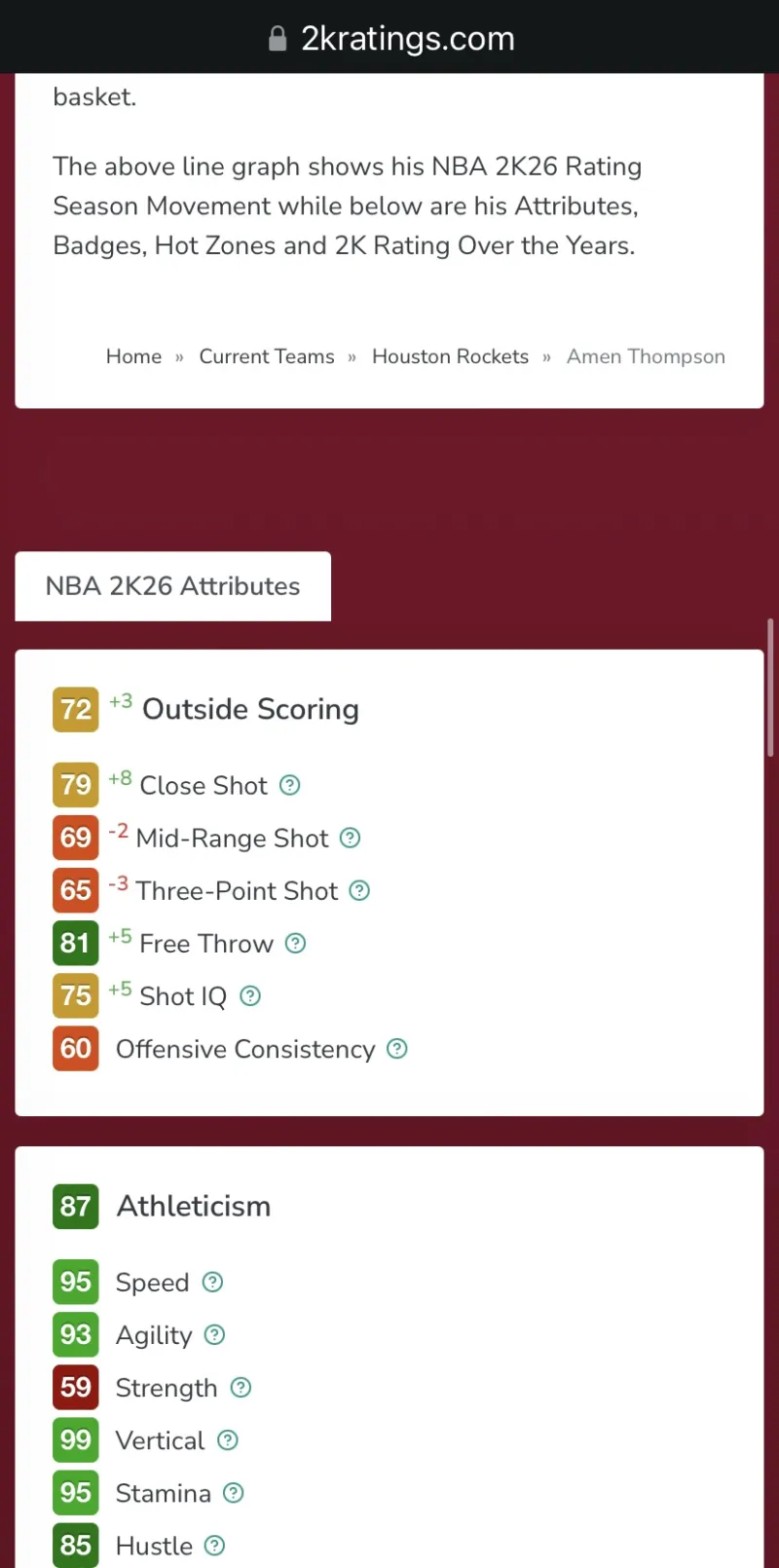 一個二號位最重要的三點:投射、防守、更新籃板,阿門全面削弱,徹底雙投不到80,昨晚正代搶斷80多,數(shù)據(jù)蓋帽只有60,更新雙籃板更是阿門只有70左右,下一步就是徹底掉評分掉徽章了。(順便說一下,昨晚正代這個2kratings網(wǎng)站更新得真快啊,數(shù)據(jù)凌晨2k更新,更新早上起來球員數(shù)據(jù)就全都更新了,阿門只有徽章沒更新)