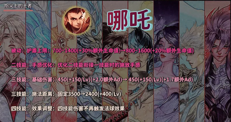 首先來看哪吒的調(diào)整,之前跟大家分析過,哪吒唯一的加強(qiáng)就是二技能的手感優(yōu)化,在21連招的時(shí)候相對(duì)更絲滑,然而哪吒不具備爆發(fā),21連招快一點(diǎn)也不會(huì)讓他的輸出產(chǎn)生質(zhì)變,因?yàn)榧寄芤膊簧婕翱刂?,這個(gè)手感優(yōu)化遠(yuǎn)無法和曹操和狄仁杰相比。