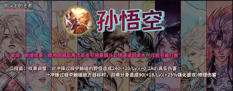 昨日更新我就跟大家說過,這個(gè)調(diào)整雖然是純加強(qiáng),但前期不要抱有太高的期望,除非后續(xù)能開發(fā)出筋斗云的真正玩法,尤其二技能的調(diào)整,對(duì)很多人來說也不算純加強(qiáng),雖然打英雄也生效,但似乎不如斬殺野怪的刷野效率高。