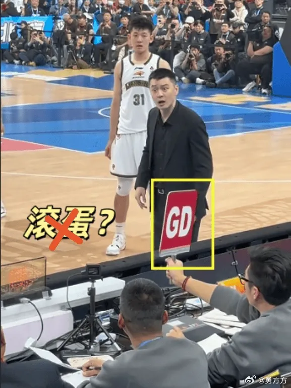 昨日CBA常規(guī)賽遼寧與北京的比賽中,遼寧主帥楊鳴在連續(xù)吃到兩次技術(shù)犯規(guī)后被罰出場(chǎng),此時(shí)技術(shù)臺(tái)工作人員舉起了”GD“的指示牌。
