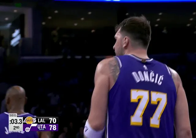 第二節(jié)比賽中,人半東契奇拋投出手打成2+1砍下25分8助攻,后爵湖人半場落后爵士5分。士分