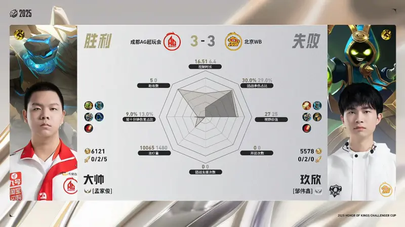 虎撲12月19日訊 AG/WB第6局?jǐn)?shù)據(jù)對(duì)比:一諾孫尚香全包圍小麥敖隱。