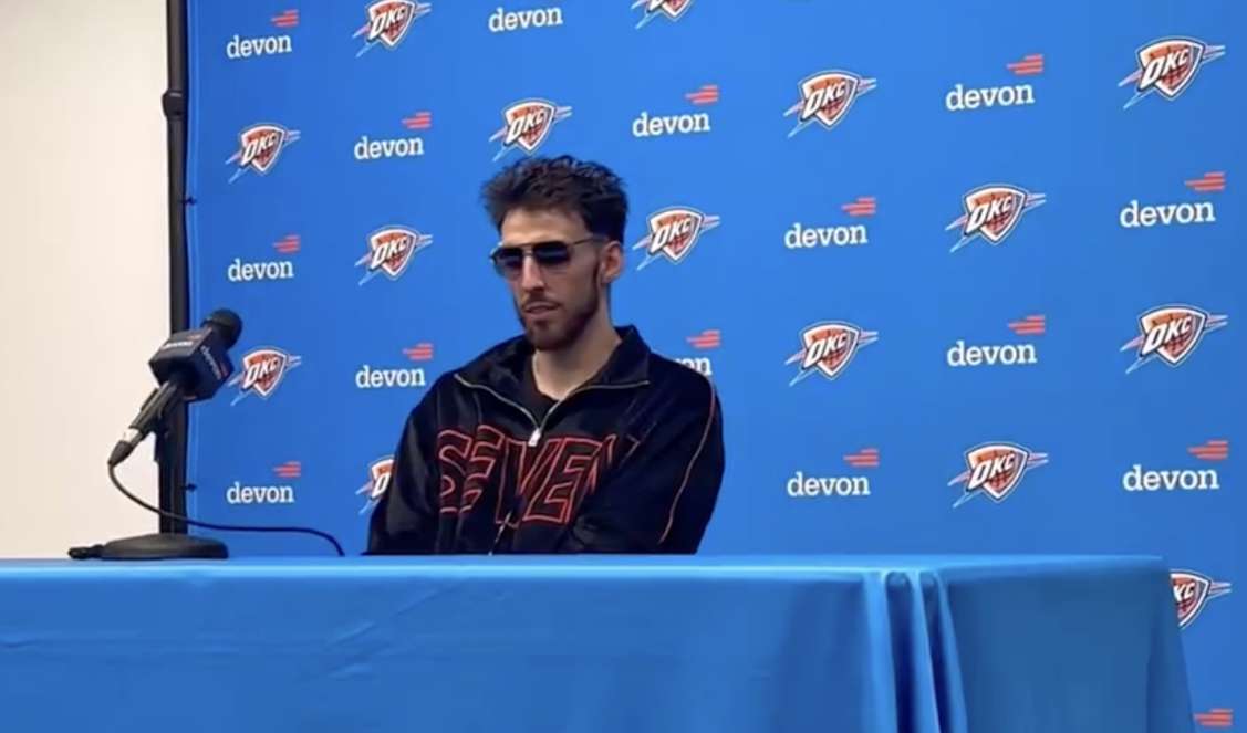 賽后雷霆球員切特-霍姆格倫接受了記者采訪,手都在談到自己今晚零蓋帽時,切特表示:“對手都不投籃,你壓根蓋不著帽。”
