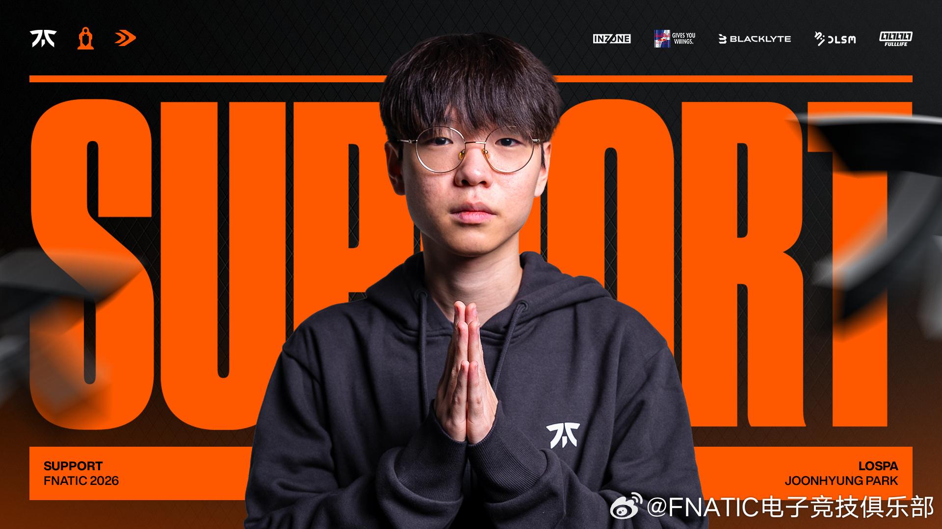 我們很高興地向大家宣布,人員入即日起,公告選手JOOHYUNG Park(ID: Lospa)正式加入FNATIC英雄聯(lián)盟分部,選手擔任輔助位。式加