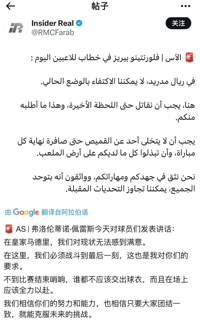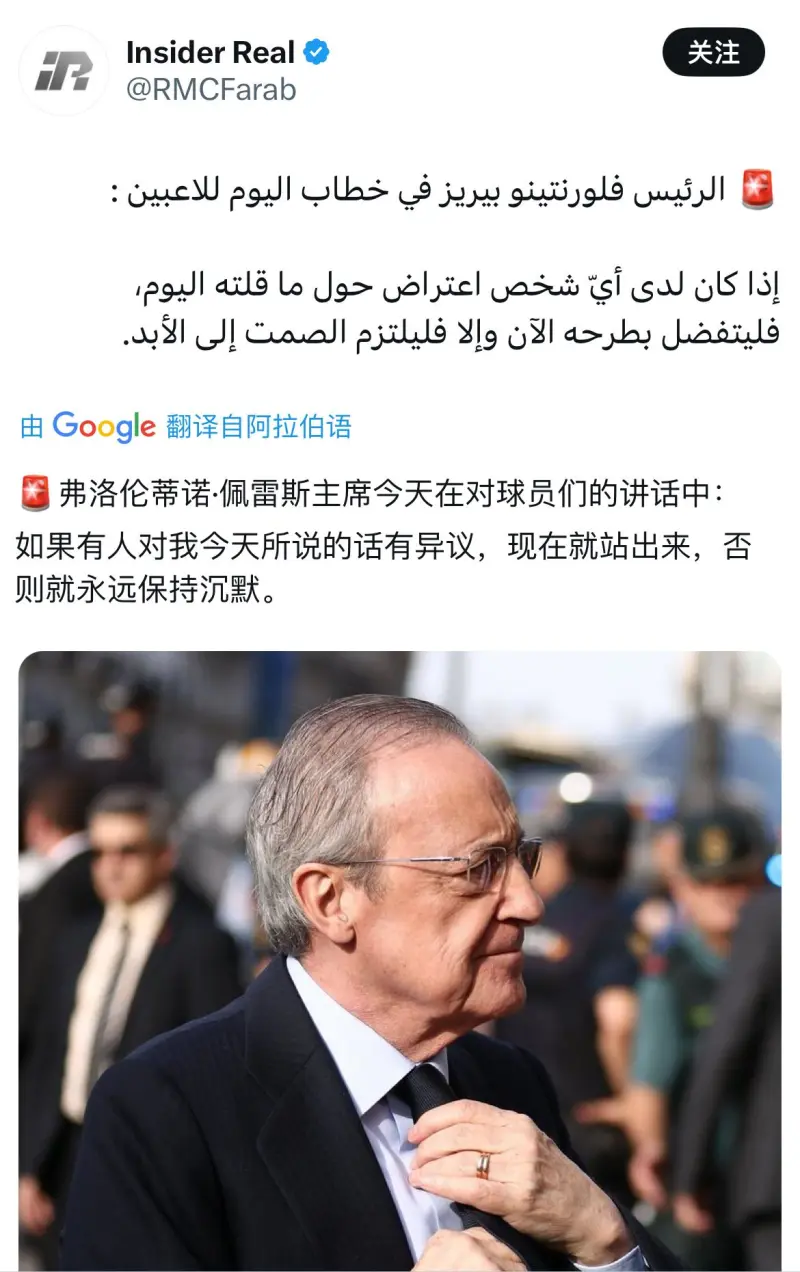 轉(zhuǎn):弗洛倫蒂諾·佩雷斯主席今天在對(duì)球員們的轉(zhuǎn)弗中果則永講話中:如果有人對(duì)我今天所說的話有異議,現(xiàn)在就站出來,洛倫