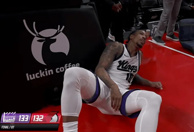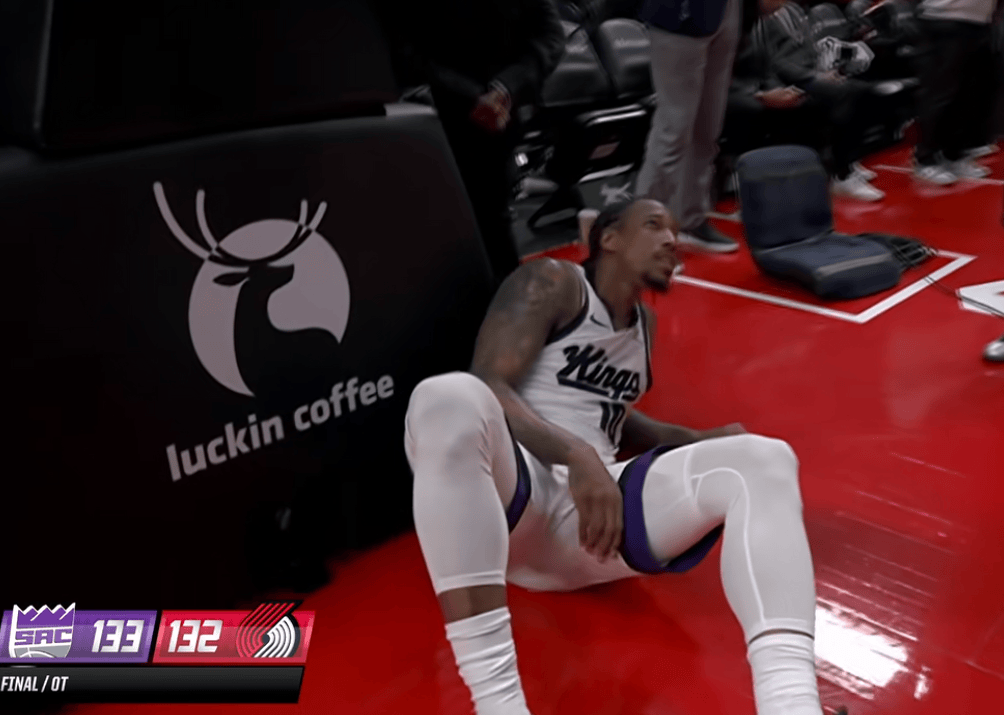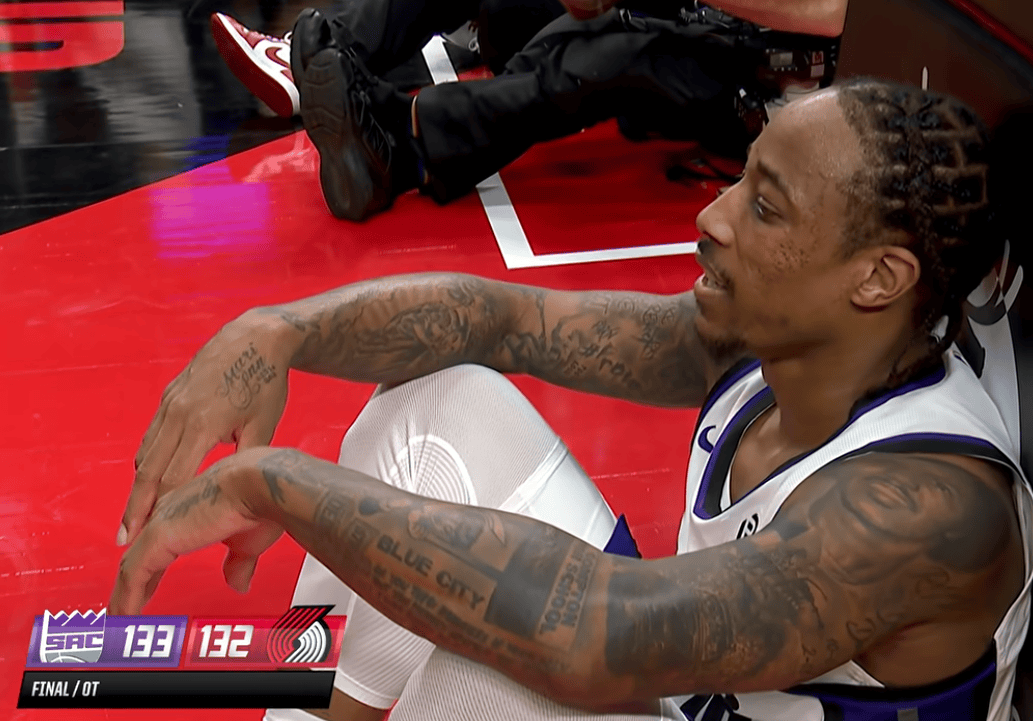 德羅贊加時賽獨(dú)砍14分并且投進(jìn)反超跳投,可惜阿夫迪亞造成犯規(guī)罰球準(zhǔn)絕殺,德羅贊癱坐在場上。