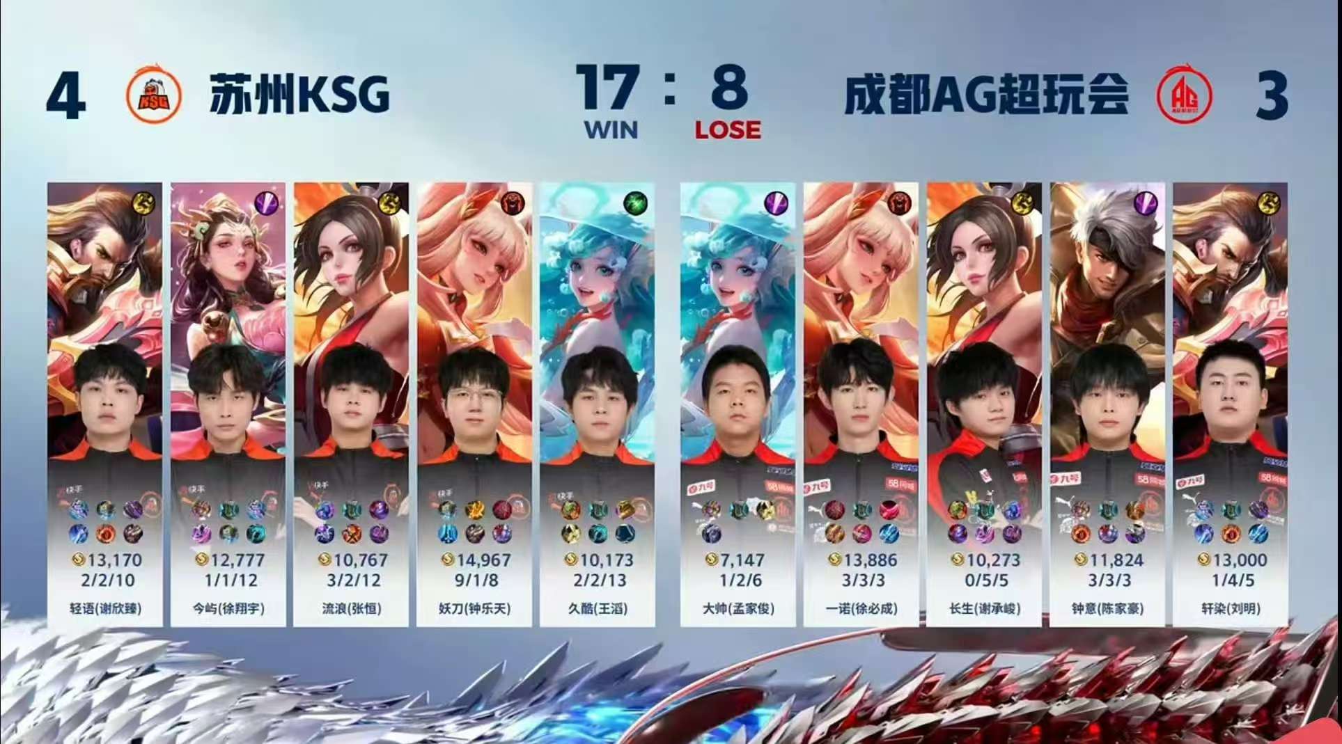 虎撲12月19日訊 據(jù)統(tǒng)計(jì),成都AG超玩會(huì)上次BO7比賽失利于2024年9月6日,仍去在2024年KPL夏季賽勝者組決賽中3:4不敵蘇州KSG,年夏距今469天。季賽距今